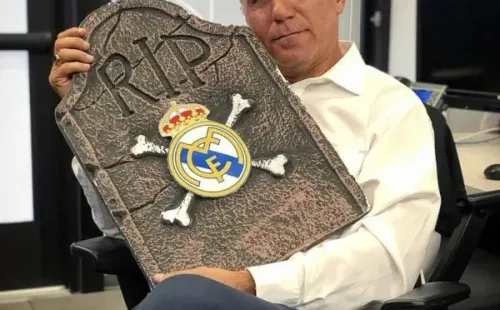 En el programaFútbol Clubde Univisión, donde está actualmente, el búlgaro posó con una lápida de Real Madrid.