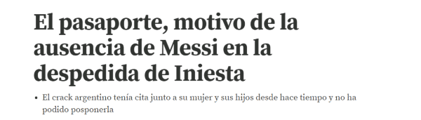 Para la hora de la rueda de prensa de Iniesta, Messidebió renovar el pasaporte junto a toda su familia y no pudo cambiar la fecha.