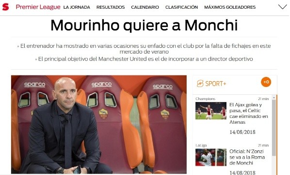 El entrenador portugués quiere incorporar un director deportivo en el corto plazo y todos sus cañones apuntan hacia Monchi, que se desempeñó durante 17 años en Sevilla para luego fichar por la Roma.