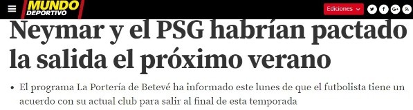 El brasileño dejaría el club al finalizar esta temporada (en el mes de julio de 2019) por un precio pactado de 200 millones de euros, recordando que fue comprado por 222 millones de la misma moneda.