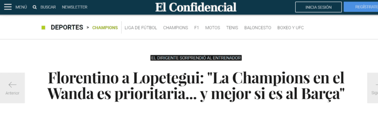 Por si fuera poco, Florentino habría bromeado (con cierta seriedad) en que el rival de la final, en lo posible, sea el Barcelona. Algo que Lopetegui no puede controlar, pero que, de vencer, lo depositaría en el olimpo de los técnicosblancospor el resto de la eternidad.