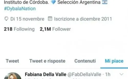 El escándalo no terminó allí, dado que Paulo habría sufrido un pequeño percance en sus redes sociales. Finalizado el partido, comenzó a difundirse una captura de pantalla del perfil de Dybala en Twitter, donde se pudo divisar un supuesto ‘Like’ que el ex Instituto le aplicó a una publicación deFabiana Della Valle, de laGazzetta dello Sport.