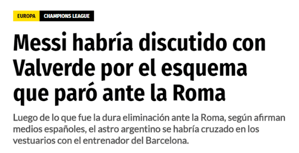 A las pocas horas después de finalizado el duelo, los medios hablaron de una posible pelea entre el DT y Lionel Messi, la figura del equipo.