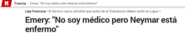 “Neymarestá enfermo. Espero que mañana se encuentre bien para poder entrenarse y jugar el domingo”. aseguró.