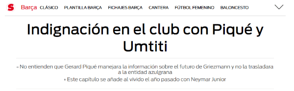 ¿El motivo? “En el Barça se considera que, en consecuencia, el futbolista azulgrana sabía qué iba a pasar con el futuro de Griezmann y están indignados por no haber informado al club azulgrana”, explicó el periódico.