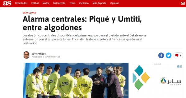Tras la victoria 3-2 en su visita al Betis, ni Gerard Piqué ni Samuel Umtiti se entrenaron a la par del grupo. Esto encendió una señal de alerta ya que, hoy por hoy, se trata de los únicos dos zagueros del primer equipo que el DT tiene disponibles para el duelo ante Getafe.