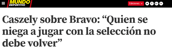 Algo como lo dijo la gloria deCarlosCazely: “No se puede poner nada sobre la Selección, cuando a uno le llaman debe agarrar la maleta y venir corriendo. No puede imponer absolutamente nada, lo encuentro muy mal por parte de Bravo”.