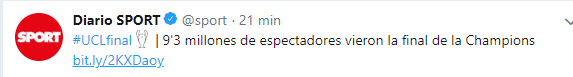 El último partido e la Champions League de este año tampoco pudo superar a la ganada en 2014 por el club madrileño, que llegó a 11 millones de personas de manera impresionante.