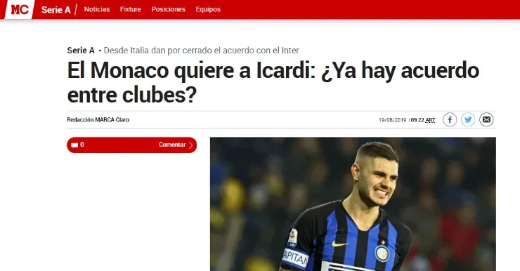 Según informó Marca, pese a las diversas propuestas enviadas, Icardi finalmente continuaría con su carrera profesional en nada más ni nada menos que el Monaco.