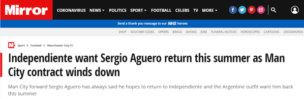 Cada vez que los hinchas de Independiente se ilusionaban con la circulación de alguna noticia-rumor que apuntara al posible regreso de Sergio Agüero, a los ingleses se les dibujaba una mueca de sonrisa. Muy probablemente esto correspondiera a esa seguridad de entender que no había razón alguna por la que el delantero pudiera querer dejar un Manchester City en el que lo tratan casi como al dueño del club, en el que tiene un salario imposible de emparejar en el fútbol argentino y una vida más que tranquila en la ciudad.