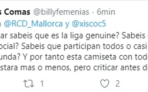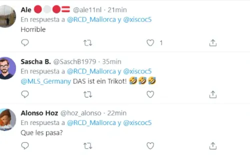 Las primeras devoluciones que esta camiseta recibió en las redes sociales lejos estuvieron de ser buenas o de hacer un guiño de aceptación a la misma. Y no fueron pocos los que se asustaron de que esa fuera la camiseta que Mallorca iba a lucir de ahora en más.
