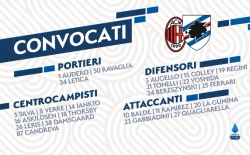 Milan y Sampdoria se enfrentarán el sábado3de abril en elStadio Giuseppe Meazza.