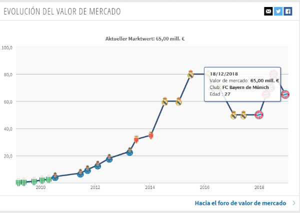 Siendo así, en caso de que James sea un jugador para canjear por otro, ¿en cuánto está tasado hoy el futbolista colombiano?