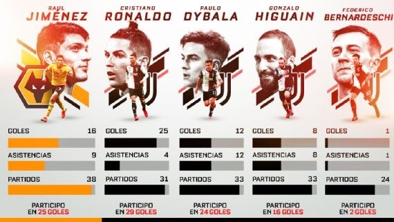El futbolista del Wolverhampton se encuentra en la terceraposición en esta competencia con los delanteros de los 2 conjuntos mencionados, por detrás del portugués y de Marcus Rashford. En cuanto a asistencias, se encuentra en la segunda colocación (solo es superado por Paulo Dybala).
