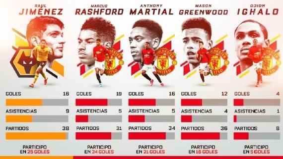 Jiménez registra 13 y 6 asistencias en la Premier League, 3 dianas y las mismas asistencias en la Europa League y ninguna intervención en la FA Cup. Los números fueron aportados por una investigación deESPN.