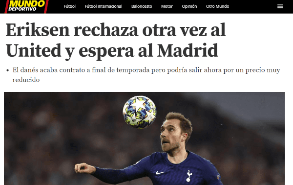 Eriksen no va a aceptar ninguna propuesta hasta que no se confirme que el Merengue no pujará por él. Pese a los variados rumores, todavía no hubo ningún movimiento oficial por parte del Madrid.