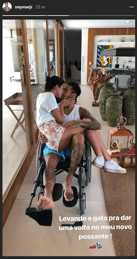 Ver a Neymar en silla de ruedas es una imagen durísima. Igual, fiel a su estilo, él se toma todo con buen humor.