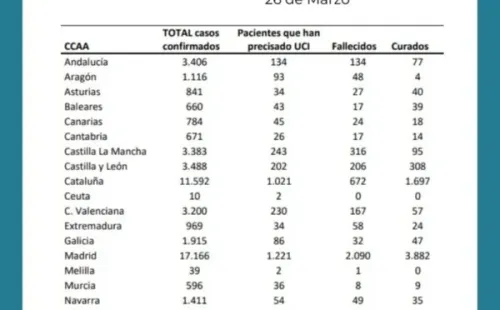 Las zonas más afectadas dentro del territorio español son Madridy La Coruña. Precisamente en la capital es que se ha levantado el hospital más grande de España, con capacidad para 5.500 camas, en el predio de IFEMA.