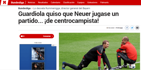 Pep quería poner a Manuel Neuver de mediocampista central. El equipo bávaro ya había salido campeón y jugaba simplemente para completar las fechas que restaban de la Bundesliga.