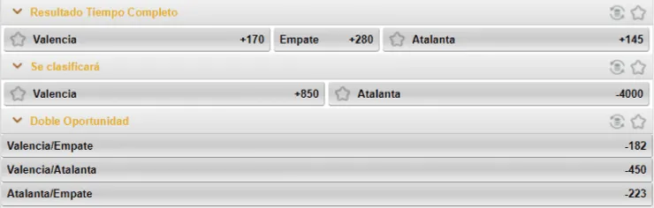Los momios de Caliente.mx nos cuentan que el favorito para vencer en este juego es el Atalanta, que paga +145, sobre los +170 que paga el Valencia para ganar en el tiempo completo de partido. Ahora, si piensas que este encuentro termina en empate, paga +280.