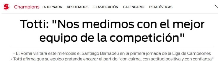 Según detalló Sport, el ex artillero habló sobre el escenario donde se llevará a cabo el cotejo: “Sabemos que el Bernabéu es un campo distinto con respecto a todos los demás. Pero nos medimos con ellos en el primer partido y quizás podamos hacer un buen partido. Estoy seguro de que lo haremos porque tenemos un equipo capaz de hacerlo bien, incluso si nos enfrentamos a unos marcianos”.