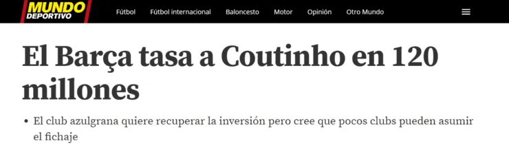 SegúnMundo Deportivo,solo clubes como PSG, Manchester Unitedy Manchester City podrían hacerse cargo de la operación y de la ficha del futbolista, quien gana una suma cercana a los 14 millones de euros por año.
