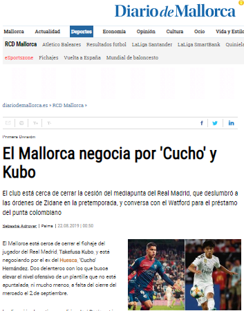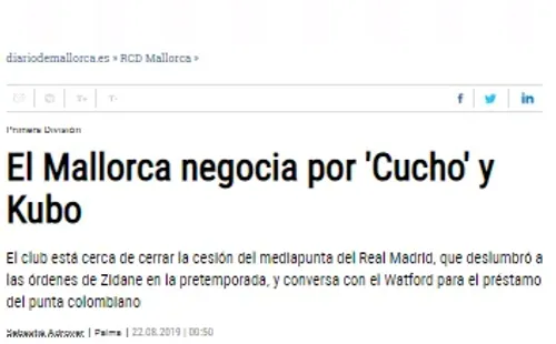 Según el diario de Mallorca, el jugador nacido en Pereira, estaría cerca de jugar a préstamo en el Mallorca, equipo recién ascendido a LaLiga de España. Esto acabaría con la incertidumbre y la preocupación que tiene el ‘Cucho’ de quedarse sin club en Europa, ya que se acerca el cierre del mercado de fichajes.