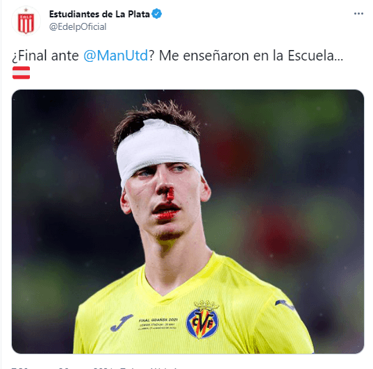 “¿Final ante @ManUtd? Me enseñaron en la Escuela…”, escribieron haciendo referencia a la final ganada por elLeónante el equipo inglés en la Copa Intercontinental de 1968. Juan Ramón Verón, padre de Juan Sebastián y abuelo de Deian, fue el autor del gol de aquella hazaña que marcó para siempre la historia de Estudiantes. ¡Hermoso!