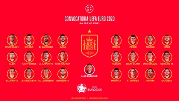 En cuanto a los nombres: Unai Simón, David de Gea y Robert Sánchez, serán los porteros. José Gaya, Jordi Alba, Pau Torres, Aymeric Laporte, Eric García, Diego Llorente, César Azpilicueta y Marcos Llorente, los defensores. Busquets, Rodri, Pedri, Thiago, Koke y Fabián, los mediocampistas. En cuanto a los delanteros, Dani Olmo, Oyarzabal, Morata, Gerard Moreno, Ferran Torres, Adama Traoré y Sarabia serán los encargados de llevar el peso ofensivo de La Roja.