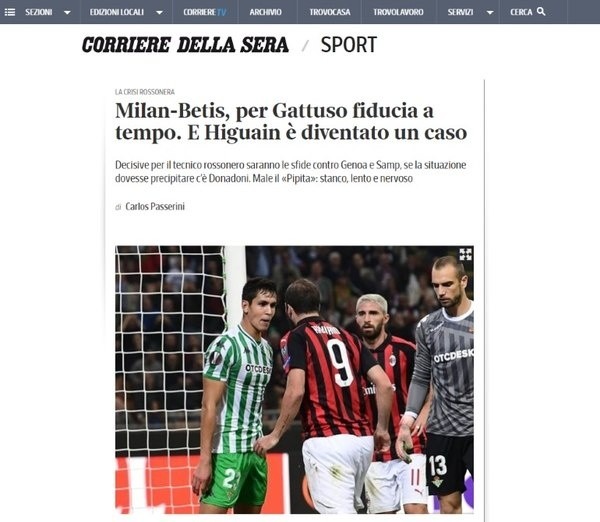El diario italiano Corriere della Sera se mostró crítico con la performance de los jugadores y disparó: “Fallaron varios de los titulares, especialmente Higuaín”.