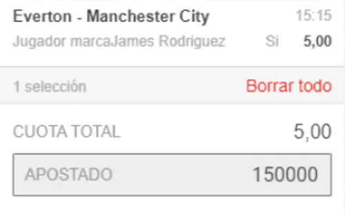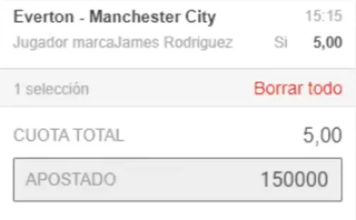 Una de las mejores cuotas que hay para este duelo tiene que ver con, nada más y nada menos que James Rodríguez. Luego de anotarle al Manchester United, un gol suyo a los ‘Citizens’ se cotiza a la alta. La mayoría de casas de apuestas están pagando casi 5 veces lo invertido si el ’19’ del Everton le marca un solo gol al elenco dirigido por Pep Guardiola.