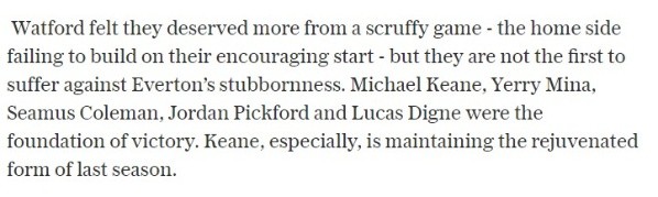 “Michael Keane, Yerry Mina, Seamus Coleman, Jordan Pickford y Lucas Digne fueron los fundamentos de la victoria ante el Watford”, afirmaron.