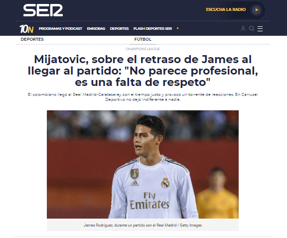 Muchas personas hablan del tema de James, uno de los que dio su opinión fue el exjugador del club ‘Merengue’, Pedja Mijatovic, que le dio con todo al volante colombiano: ‘’No parece realmente profesional y quizás sea una falta de respeto. No sé cómo son ahora las reglas internas, pero hay que estar ahí, saludar, hacer grupo”, dijo al programa Carrusel Deportivo de la Cadena SER.