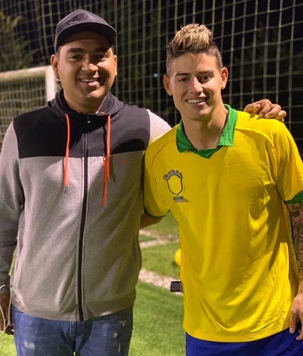 +Otra foto de James en la noche de fútbol que vivió junto a varios colegas colombianos: