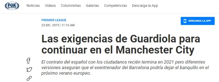 Habiendo conseguido varios títulos de índole local, medios internacionales informaron que Guardiola afrontaría sus últimos seis meses al mando deLosCityzens en caso de no ser cumplidas sus exigencias.