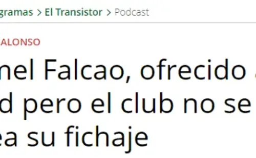 Según informóOnda Cero,RadamelFalcao, hoy en el Mónaco de Francia, sí fue acercado al club español. No obstante, desde España negaron cualquier interés por él.