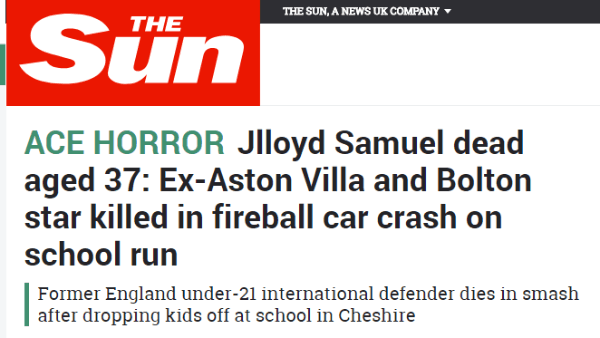 Jlloyd Samuel, exfutbolistatrinitense que pasó por varios equipos de la Premier League, falleció esta mañana tras sufrir un accidente automovilístico.