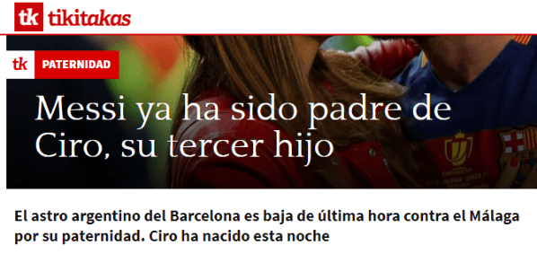 Lionel Messi no jugará esta tarde ante Málaga en una nueva jornada de la Liga de España. ¿Por lesión? No ¿Por un problema persona? No. No estará por algo hermoso.