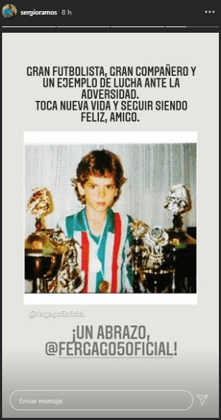En las últimas horas, mediante su cuenta de Instagram, Sergio Ramos, ex compañero de Gago en el Real Madrid, dejó al desnudo el aprecio que siente por el argentino y escribió: “Gran futbolista, gran compañero y un ejemplo de lucha ante la adversidad. Toca nueva vida y seguir siendo feliz, amigo, ¡Un abrazo!”.