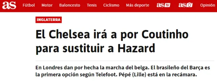 Según señalóAS, de darse la posible transferencia del crack belga al club de España, el Chelsea buscará reemplazarlo con otro deportista de alto nivel y calidad.