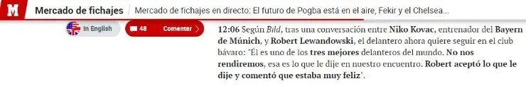 Niko Kovač, actual entrenador del Bayern, habría tenido una larga charla con Robert para convencerlo de quedarse. Todo indica que el diálogo entre ambas partes fue fructífero, ya que se especula que el delantero cambió de parecer y se encuentra listo para continuar rompiendo redes en Alemania y quedarse allí.