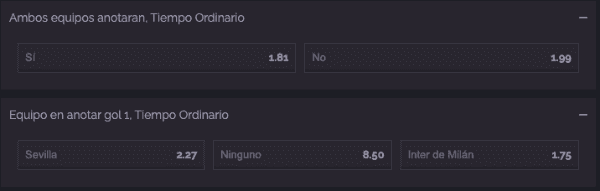 Otras cuotas para el duelo entre Seville a Inter.