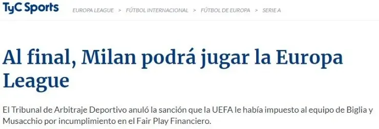 La institución integrada por los deportistas argentinos Lucas Biglia y Mateo Musacchio, sin embargo, no se dio por vencida. Los dirigentes apelaron en todo momento ante la decisión tomada por UEFA… y finalmente las quejas rindieron sus frutos.