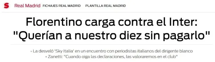 En esta oportunidad, quien se hizo eco del interés del Inter de Italia fue nada más ni nada menos que Florentino Pérez, presidente del Real Madrid.