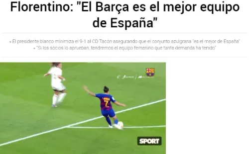 Respecto a la abultada goleada que le propinó Barcelona al tacón, Florentino le reconoció a las Blaugranasel poderío:“el otro día jugó el mejor equipo de España contra un recién ascendido”.
