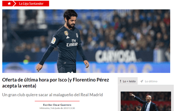 Tottenham, subcampeón de la última Champions League, ya habría enviado una oferta de 80 millones de euros por el fichaje de Isco.