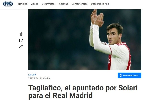 Cabe destacar que Tagliafico, que arribó al mencionado conjunto holandés a finales del año 2017, viene de medirse precisamente ante Real Madrid en el marco de la UEFA Champions League.