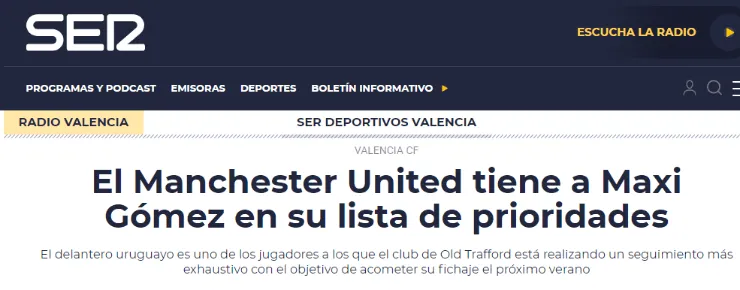 Sin embargo, pese a la cifra para ficharlo, desdeCadena Serinformaron queManchester Unitedha puesto en su lista de prioridades a Maxi Gómez.