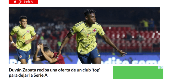Dice el portal Don Balón, de España:”Diego Pablo Simeone no pierde detalle del futbol sudamericano y ha quedado prendado de Zapata, un jugador con ADN colchonero, que pelea, que lucha y que corre como ninguno, gracias a su corpulencia y su fuerza física”.