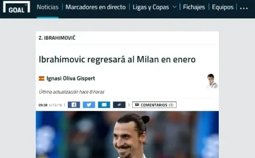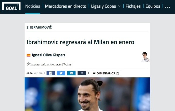 Según informa ‘Goal’, Ibrahimovic se convertirá en jugador del necesitado Milan a partir de enero de 2019. Cabe destacar que el talentoso delantero ya defendió dicha camiseta entre 2010 y 2012.